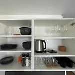 객실은 부엌뿐만 아니라 발코니, 발코니, 업무 데스크도 갖추고 있습니다. 숙소에는 또한 1개의 욕실이 있습니다. Luxusapartment Mit Grosser Terrasse, E-Parkplatz Und Parkplatz 아파트에는 1개 침실이 있습니다. 롤인 샤워, 개별 변기도 제공됩니다.